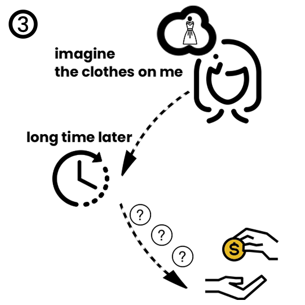 消費者透過腦中想像,來試穿衣服。在抽象複雜的尺寸選擇流程之中,消費者難免會心生猶豫,降低購買意願。